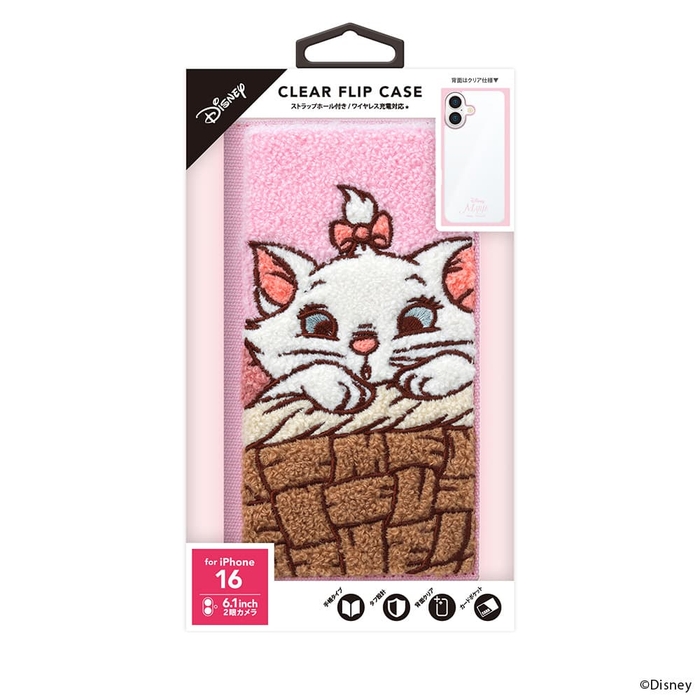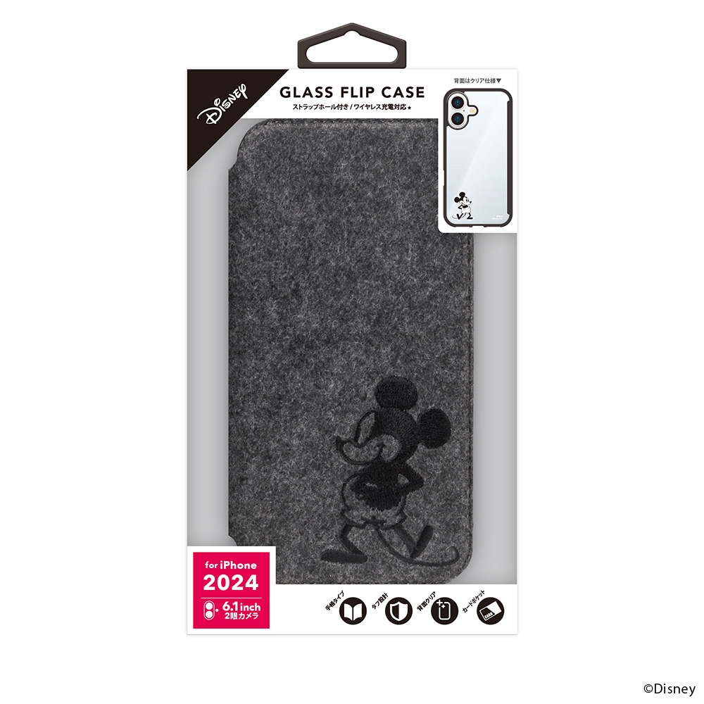 iPhone16、iPhone16Pro に対応する背面がクリアで端末デザインを楽しめるディズニーキャラクターデザインの手帳型カバーを株式会社PGAが10月25日、31日からそれぞれ新発売