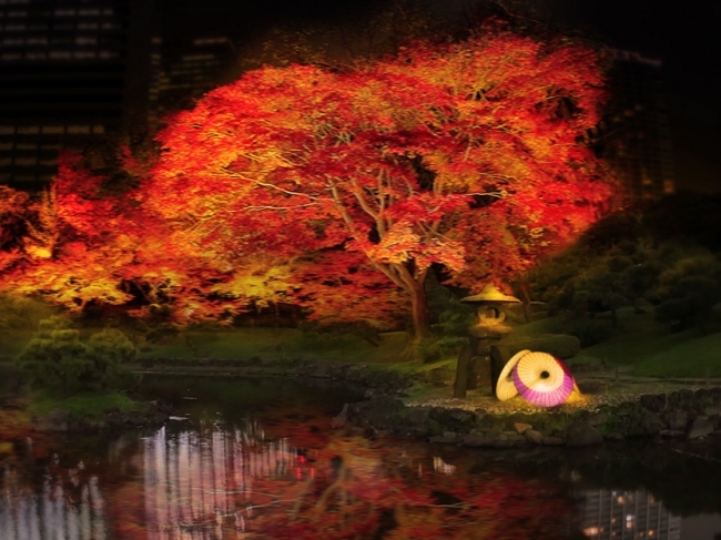 その中で竹芝エリア地区に存在する歴史ある旧芝離宮恩賜庭園の新たな活用方法として、紅葉ライトアップイベント「芝離宮夜会 by 1→10 ~Lights interact with nature~」を実施します。
