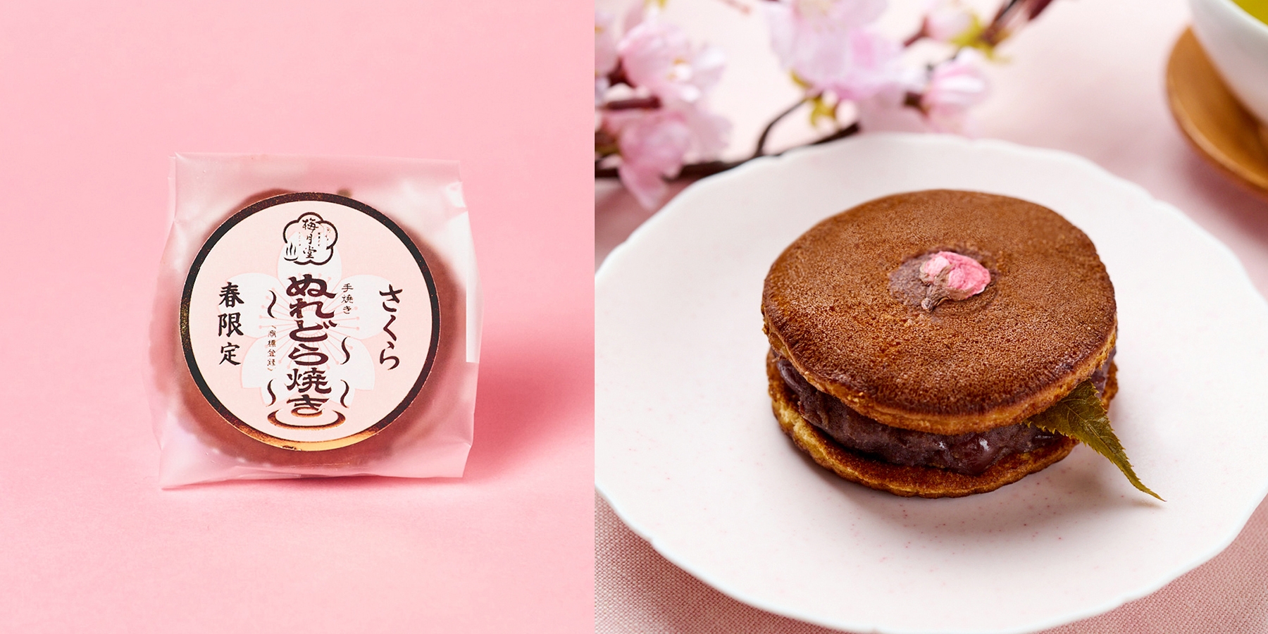 薄くしっとりとした手焼きの皮に、北海道産大納言小豆を使用した自家製餡。日が経つほどに双方がしっとりとなじむ、職人泣かせのどら焼きの春限定商品。桜葉と桜花の風味を活かした「さくら」は、餡の中で桜が咲く春だけの味わいです。