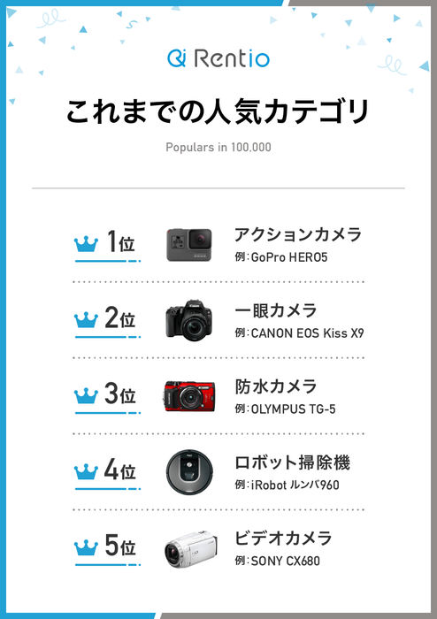 カメラ・家電のレンタルサービス「Rentio」 レンタル注文10万件を突破!