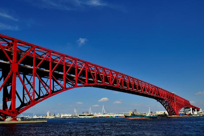 港大橋は、規模、材料、工法ともに我が国のトラス橋の到達点を示した、中央径間長としては日本最長、世界第3位のゲルバートラス橋です。
