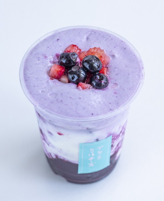 ブルーベリー、ストロベリーをごろごろと使用したジュレと、酸味のきいたチーズドリンクは、まるで飲むレアチーズケーキ。