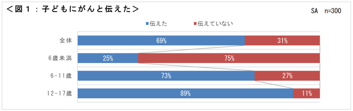 ・子どもの年齢が高い、または女の子をもつがん治療中の方は、がんと伝えたことが多い。<図1>