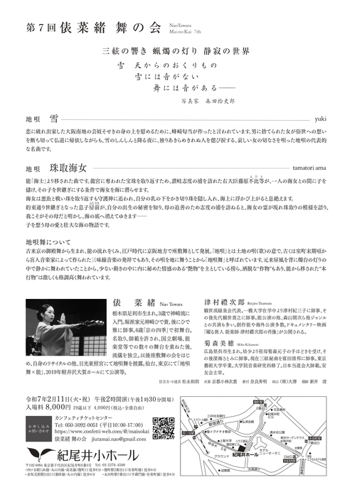 『第7回 俵菜緒 舞の会』が2025年2月11日 (火・祝)に紀尾井ホール(東京都 千代田区 紀尾井町 6番5号)にて開催されます。