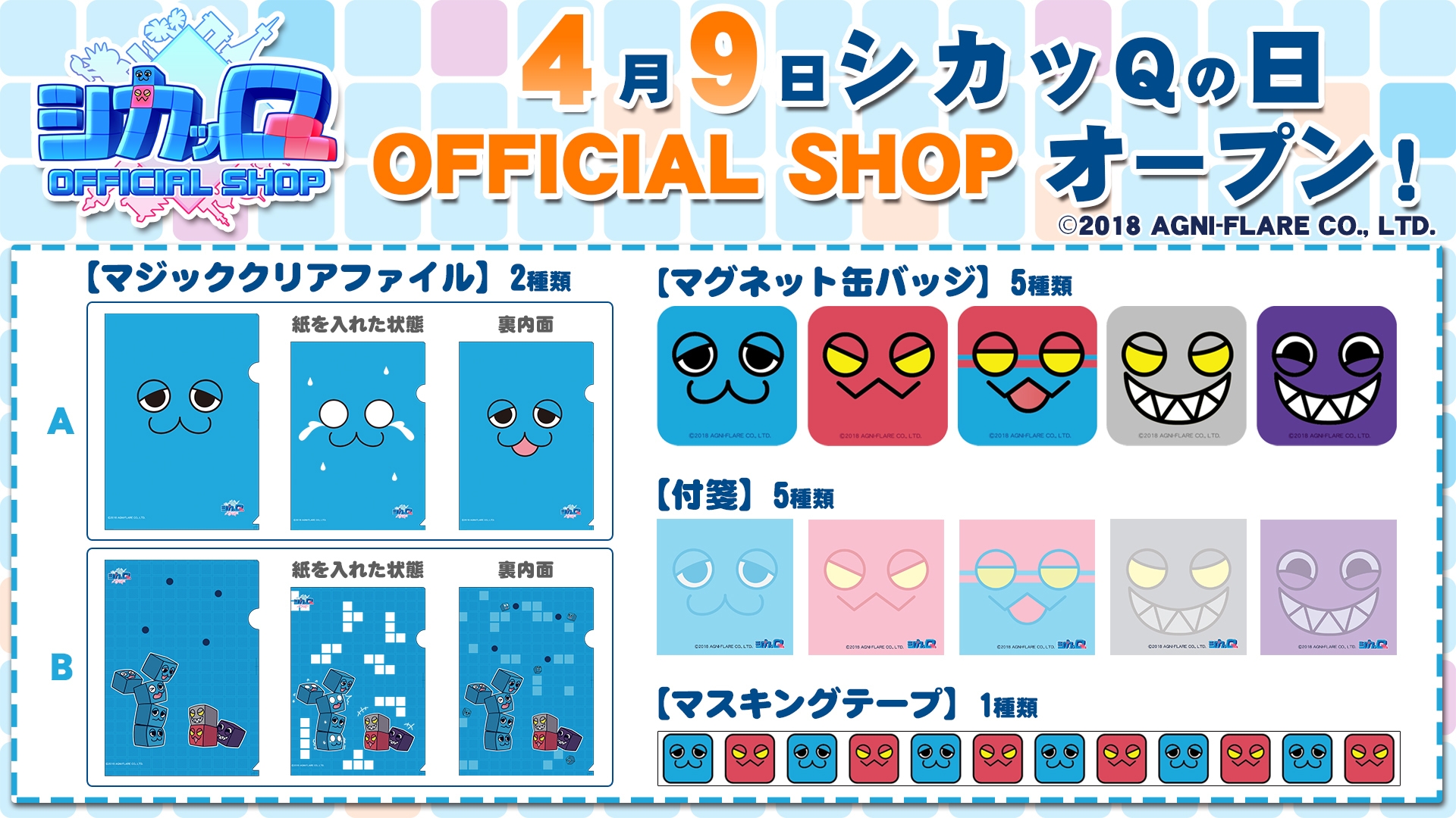 株式会社アグニ・フレア(本社:神奈川県横浜市港北区、代表取締役:稲葉 剛士、以下 アグニ・フレア)は、Qキョクパズルアクション『シカッQ』に登場するキャラクタのLINEスタンプを本日2019年4月5日(金)にリリースしました。