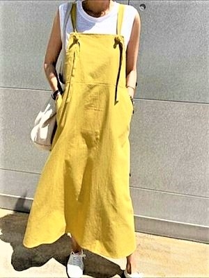 【OTONA韓国】Tシャツ付きキャミワンピ マスタードイエロー