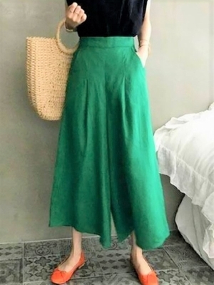 ワイドだけどスッキリみえるキュロットパンツ。ワイドシルエットですが、足首までの丈感で全体的に軽さがでます。「映える」グリーンでオシャレ度アップ間違いなし!