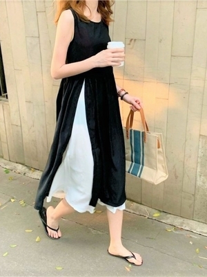 カジュアルになりすぎないキャミワンピ。フレアなシルエットが大人Kawaee! 爽やかな夏の日にピッタリな楽チンキャミワンピです。白いTシャツ付き!