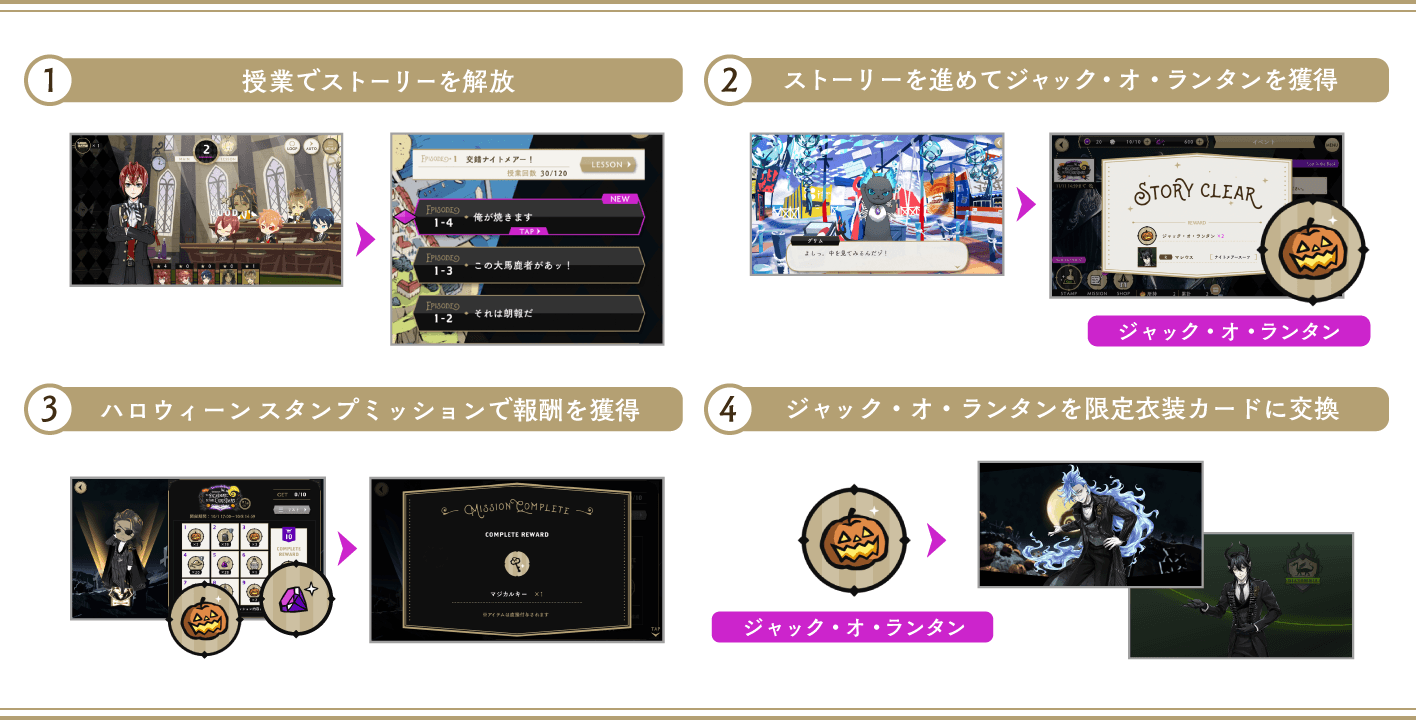 イベント限定ストーリーの各章を解放するとハロウィーン ミッションに挑戦できます。