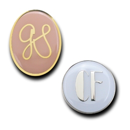 実例紹介NO.703の「東京ばな奈ネームピン」に続く2度目のご依頼で、東京都中央区銀座の株式会社グレープストーン様が製作されたのは前作と雰囲気の違うピンズ。前回ご用命いただいたビッグサイズの作品も店舗スタッフ用のオリジナルグッズでしたが、今回は新たに誕生した2つの菓子ブランドを、販売スタッフの方と一緒にPRする円形仕様の小ぶりなピンズ。仕上げは異なるものの、使命を同じくする2種類のオーダーメイドアイテムはどちらも「ブランドピンズ」です。