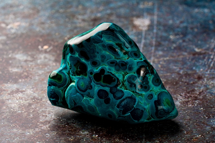 マラカイトは比較的軟らかい銅鉱石として知られています。深みのあるグリーンをもっていますが、色の濃さや模様は産地や形成過程によってことなるため一つとして同じ模様にはなりません。また表面を研磨することでつややかな輝きを放つため、宝石や装飾品など広く愛される魅力的な石です。