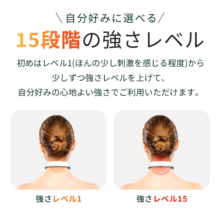 ・レベル1からレベル15まで細かい強弱設定ができるので、お好みの強さで使用が可能です。