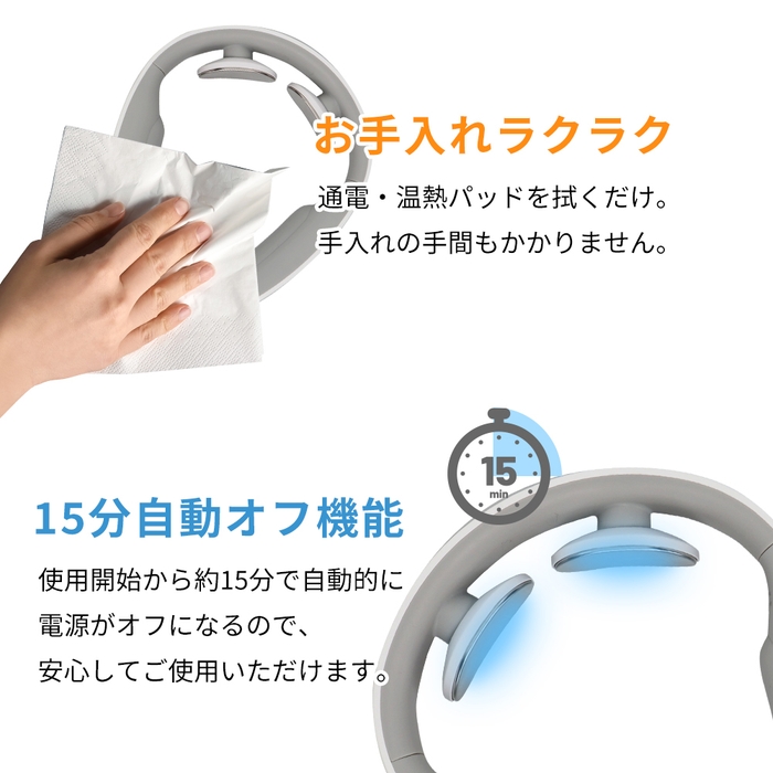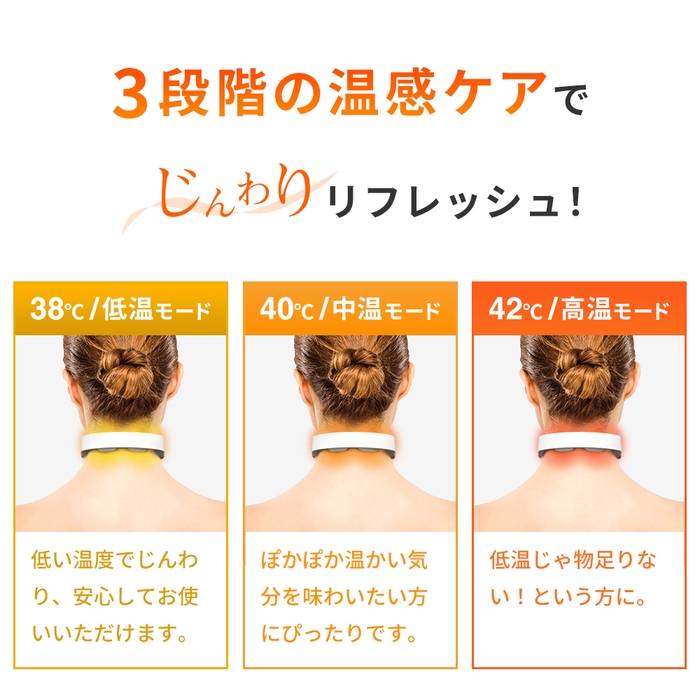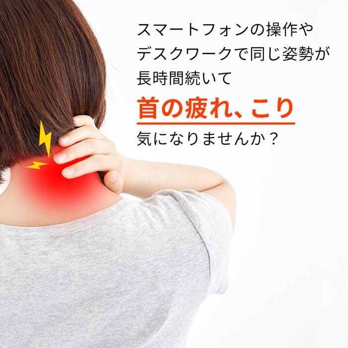 スマートフォンの操作やデスクワークで同じ姿勢が長時間続き、首の疲れやこりが気になっている方にも、ホッとリフレッシュしていただける製品になっています。