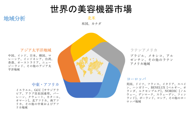 世界の美容機器市場に関するレポートは、地域に基づいて、北米、アジア太平洋、ラテンアメリカ、ヨーロッパ、中東、アフリカの5つの主要地域にさらに分割されています。