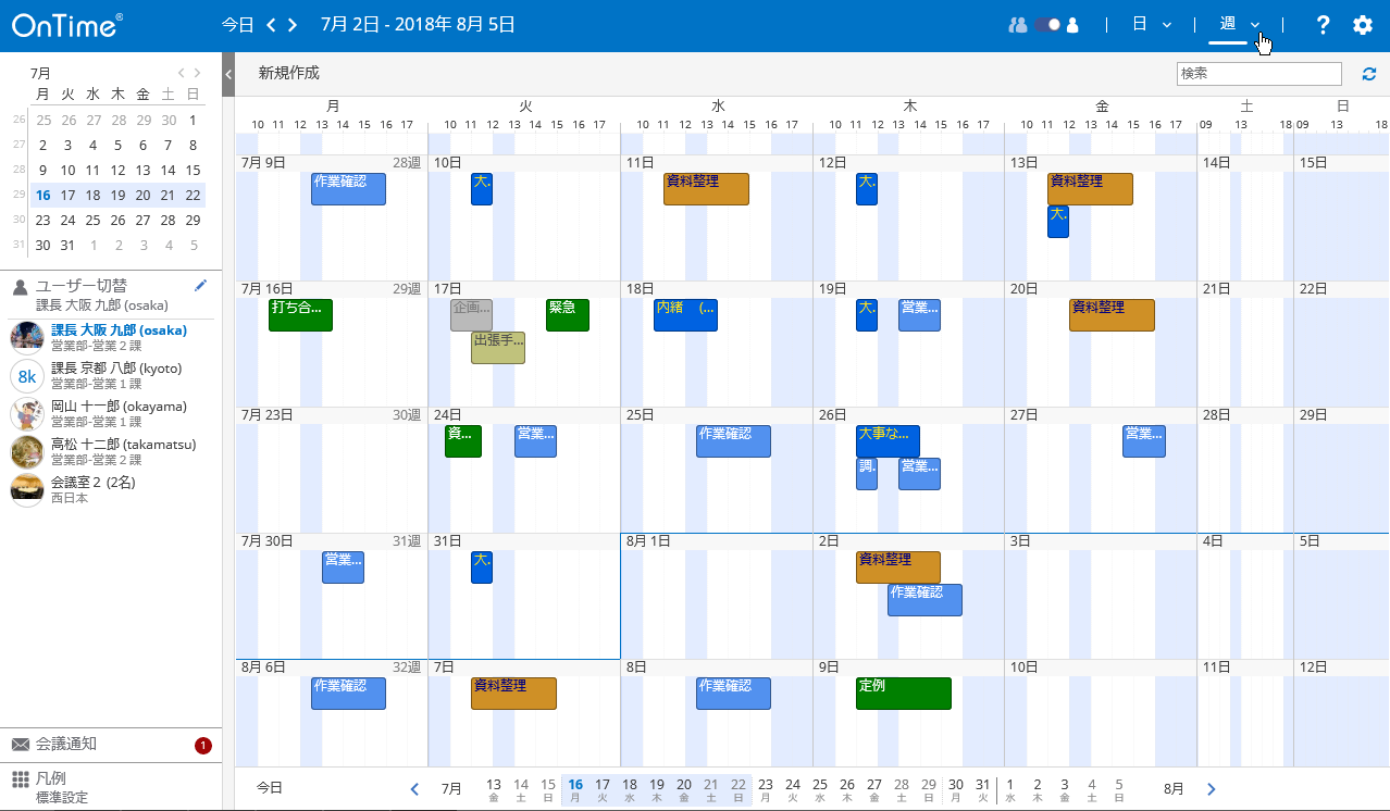 指定したインターバルでユーザーや会議室の前後数日のデータをアーカイブします。会議室の不正利用削減やスケジュールデータの長期保存が実現できます。
