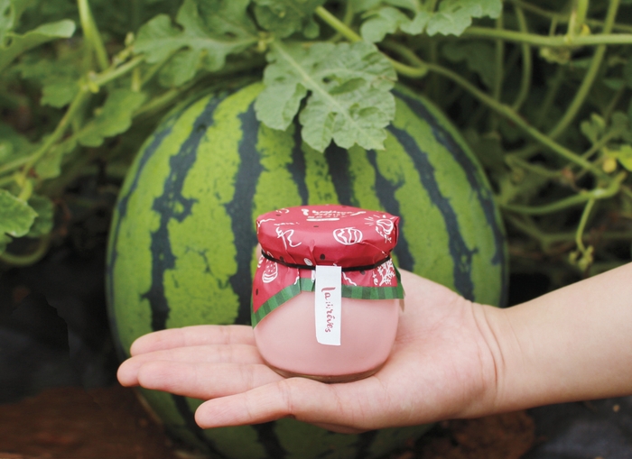 能登すいかとは、日本海に面した砂丘地帯や能登一帯に広がる赤土地帯において、自然条件を知り尽くした熟練農家が、手塩にかけて育てた夏の風物詩です。日較差のある能登で、あわてずじっくり育てるので、シャリ感、果汁、甘味3拍子揃ったすいかに仕上がります。出荷前には、試し切りをして糖度11度以上を確認して出荷しています。そんな能登すいかを使用して作ったプリンが「輪島プリン能登すいか」です。見た目にも美しい薄ピンク色のプリンには、従来のプリンにも使用している能登産の卵や牛乳、生クリームなどを用いており、私たちのプリンの特徴であるとろとろでなめらかな食感は損なうことなく、みずみずしい能登すいかのさっぱりとした甘味を閉じ込めることができました。