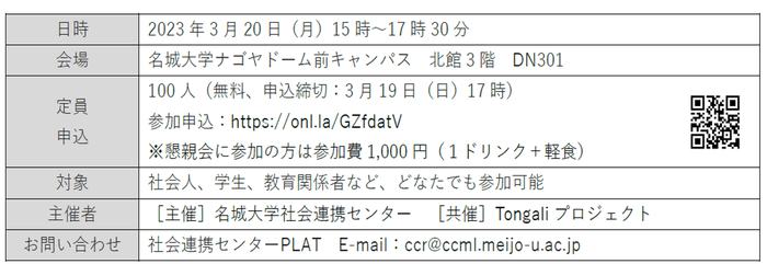 テーマは「中部・愛知エリアの共創を加速する~REALIZE~」。全国の共創のトップランナーを招いたゲストトークとパネルディスカッション、本学や中部・愛知エリアの若者や大学を中心とした共創・イノベーションプロジェクトのピッチ(プレゼンテーション)を行います。時代の変化の捉え方、実践している共創、未来について、ヒントが得られる貴重な機会で、どなたでも参加可能です。