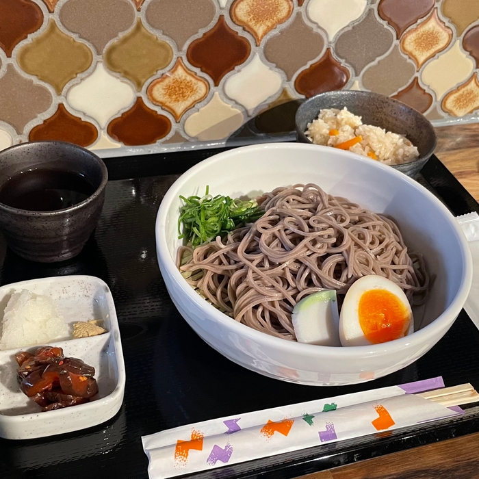 店主は、大阪ひろ富そばで修行中で、看板娘のお母さんとの二人で営業しています。修業中のため本格的なざるそばのセットが700円とリーズナブルな価格に設定されています。シコシコの蕎麦と白胡麻油が効いた炊き込みご飯が美味しいと評判です。お店は間借りで営業しており、実績を積んで将来は地元の奈良県王寺町に実店舗を出店することを目標としています。店名は、王寺町のキャラクター「雪丸くん」を使用しており、許可を得ています。