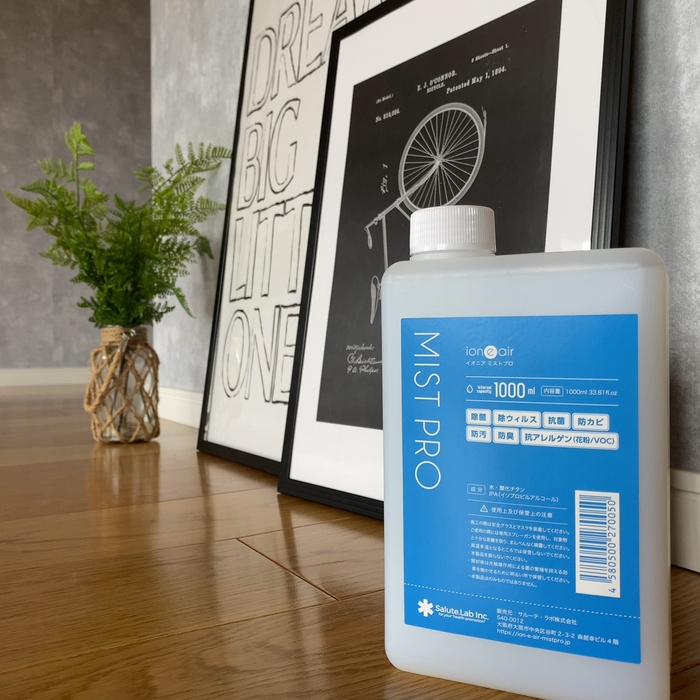 イオニアミストプロは、バインダー不要でどこにでも吹付けることが出来るようになりました。これによりガラス面や、精密機械(パソコンやスマートフォン)などにも吹付けることが可能となり生活空間全てで安心して利用することが出来ます。