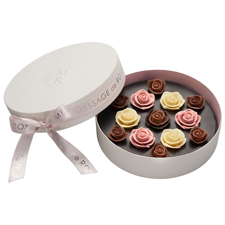 1989年に誕生したメサージュ・ド・ローズ(薔薇に込めたメッセージ)。“愛と美の象徴である薔薇の美しさをチョコレートで表現し、メッセージを込めたい”との想いからスタートしたブランドです。薔薇の花びらを忠実に再現すべく、その形・曲線・厚みなどにこだわり、そこからもたらされるやわらかい口どけを目指して試行錯誤を繰り返しました。当社グランシェフが、甘味と苦みのバランスを考え芳醇な味わいに仕上げたオリジナルブレンドのチョコレートを使い、セミハンドメイドで心をこめてつくっています。まるで花びらを味わうような、繊細な口当たりとやわらかな味わいのチョコレートが誕生しました。