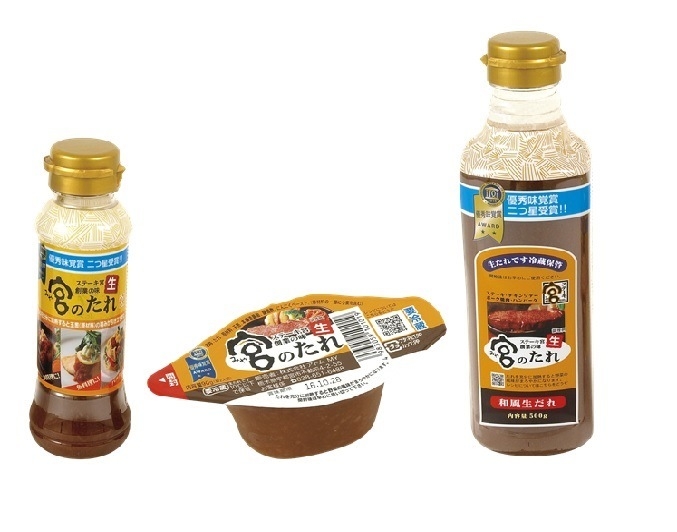 この度、受賞が決定しました『宮のたれ』は、醤油・酢・玉ねぎ・にんにくというシンプルな原材料で、無添加・非加熱で約3週間じっくり熟成されており、加熱することでまろやかな味わいが広がるこの「生たれ」は、ステーキ宮の看板商品です。