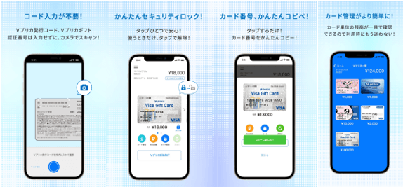 現在、インターネットで提供しているVプリカ会員向けサービス「Myページ」の各種機能(カード情報の確認やVプリカ購⼊、発⾏等)を簡単にご利⽤いただけるアプリです。