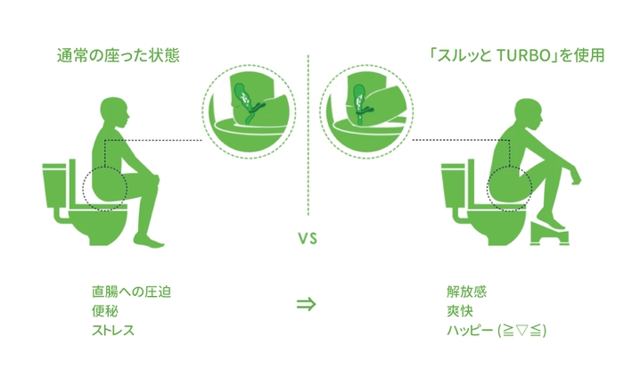 「スルッとTURBO」は和式トイレのしゃがんだ前傾姿勢を再現します!
