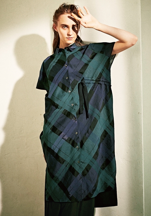 春夏のファッショントレンドの一つであるシアー(透け)素材とチェック柄で、大人の女性に相応しい上品な表情を作り出したいと考えました。素材や加工を工夫し、重厚なイメージのタータンチェックをモチーフにした格子柄が軽快に見え、相反する面白さを表現することができました。