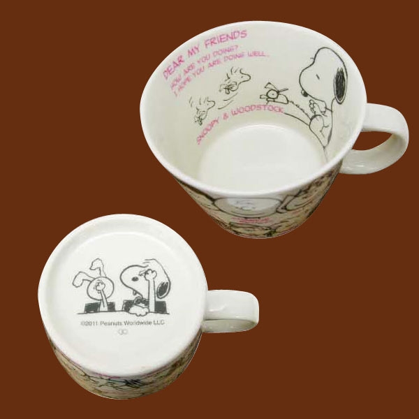 カップの内側や底部分にも、スヌーピーのかわいい姿がデザインされています。隠れたところまでスヌーピーが味わえて嬉しいですね。大き目マグなので、スープカップとしてもピッタリです。