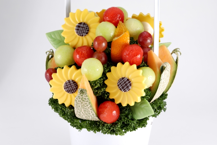 「Soleil(ソレイユ)」にはスイカやメロン、オレンジなどをたっぷり使用。フルーツ好きの方に喜ばれること間違い無しのフルーツブーケです。豊富なサイズ展開からお選びいただけます。