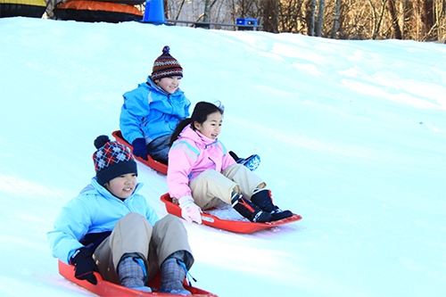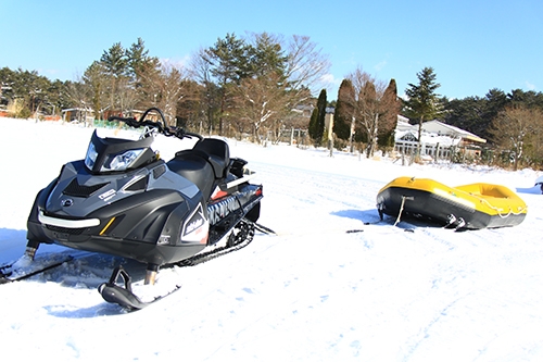 また、「スノーモービル」は免許不要で手軽に乗れて、雪上特有の普段なかなか味わうことができない乗り心地を体験できます。他にも、浮き輪状のチューブに乗りクルクル回りながら雪の滑り台を滑る「チューブスライダー」も4歳からお楽しみ頂け、日常では中々体験できない、富士山の麓ならではの雪遊びを、ご家族揃って、手ぶらで気軽に体験できる雪遊び場となっております。
