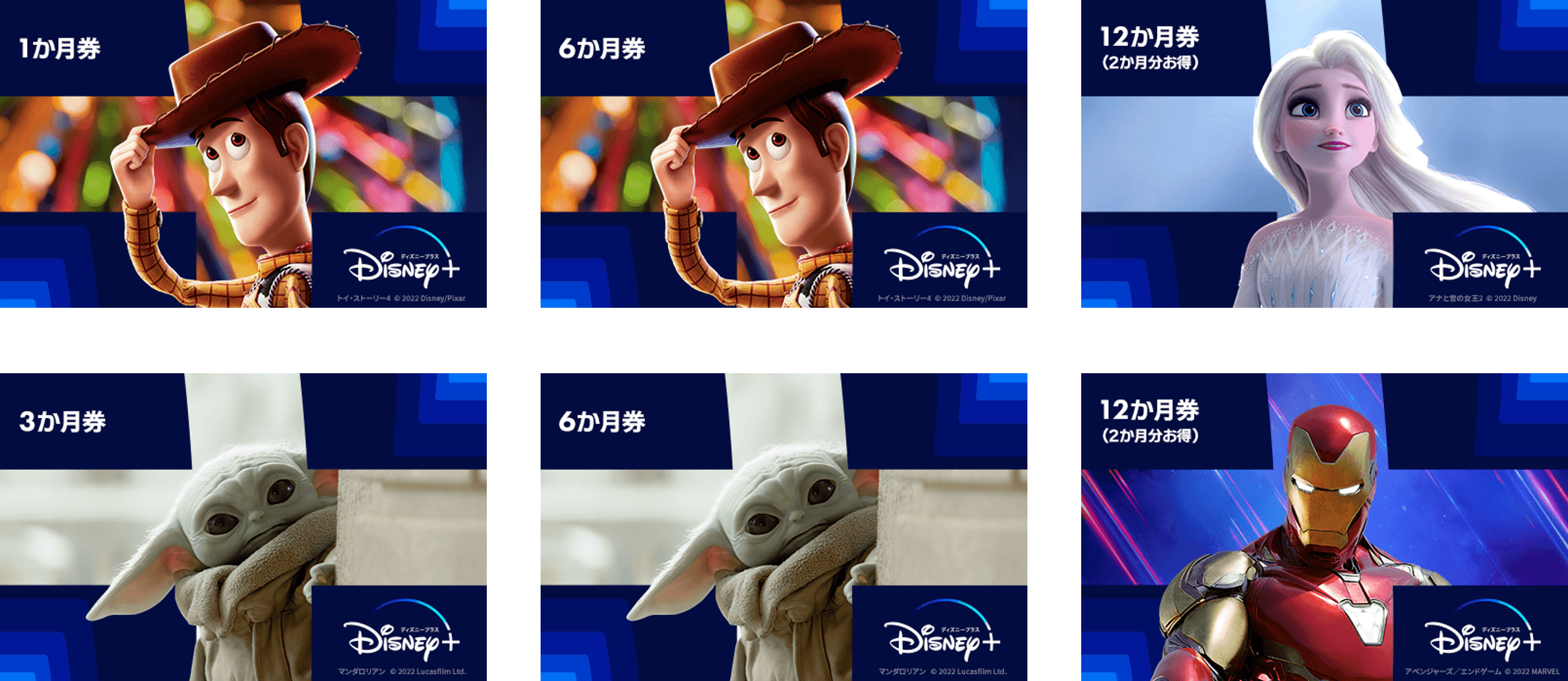 「ディズニープラス プリペイドカード」にはインコム・ジャパン株式会社が提供する“POSA”の仕組みが採用されています。ギフトとしても喜んでいただける魅力的なカードデザインとディズニープラスの素晴らしいコンテンツを皆様のお手元にお届けいたします。