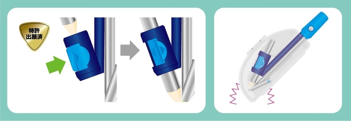 「人間工学ヘッド」とは、こどもの手の大きさやコンパスを回すときの指の形や動き方から設計した形状のヘッドです。