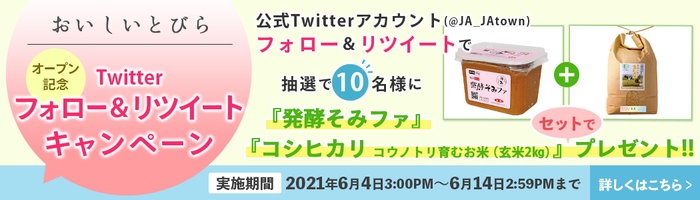 応募方法:「JAタウン」公式Twitterをフォローし、対象のツイートをリツイートすることで自動的に応募となります。