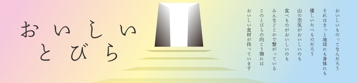 この「おいしいとびら」の向こう側で、「おいしい食べもの」が皆さまをお待ちしております。