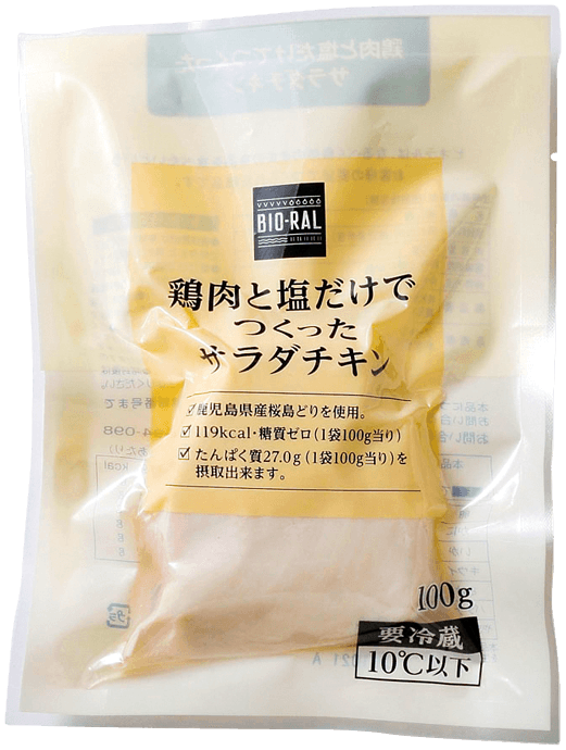 体に優しい素材や製法、健康や自然志向にあわせたプライベートブランド“BIO-RAL(ビオラル)”の「鶏肉と塩だけでつくったサラダチキン」も販売中です。こちらもぜひお試しください!