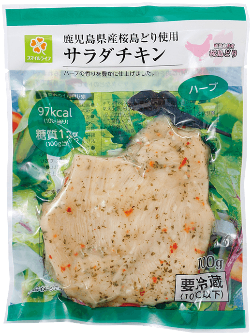 ”健康的”なイメージとさまざまな料理に使用できる利便性から人気のサラダチキン。スマイルライフのサラダチキンはこだわりの”鹿児島県産桜島どり”を使用しており、飽きずにお召し上がりいただけるよう3種類のフレーバーをご用意しております。