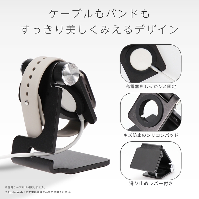 Apple Watchのバンド部分もスタンドに固定ができるので、充電中も安定してすっきり美しく見えます。