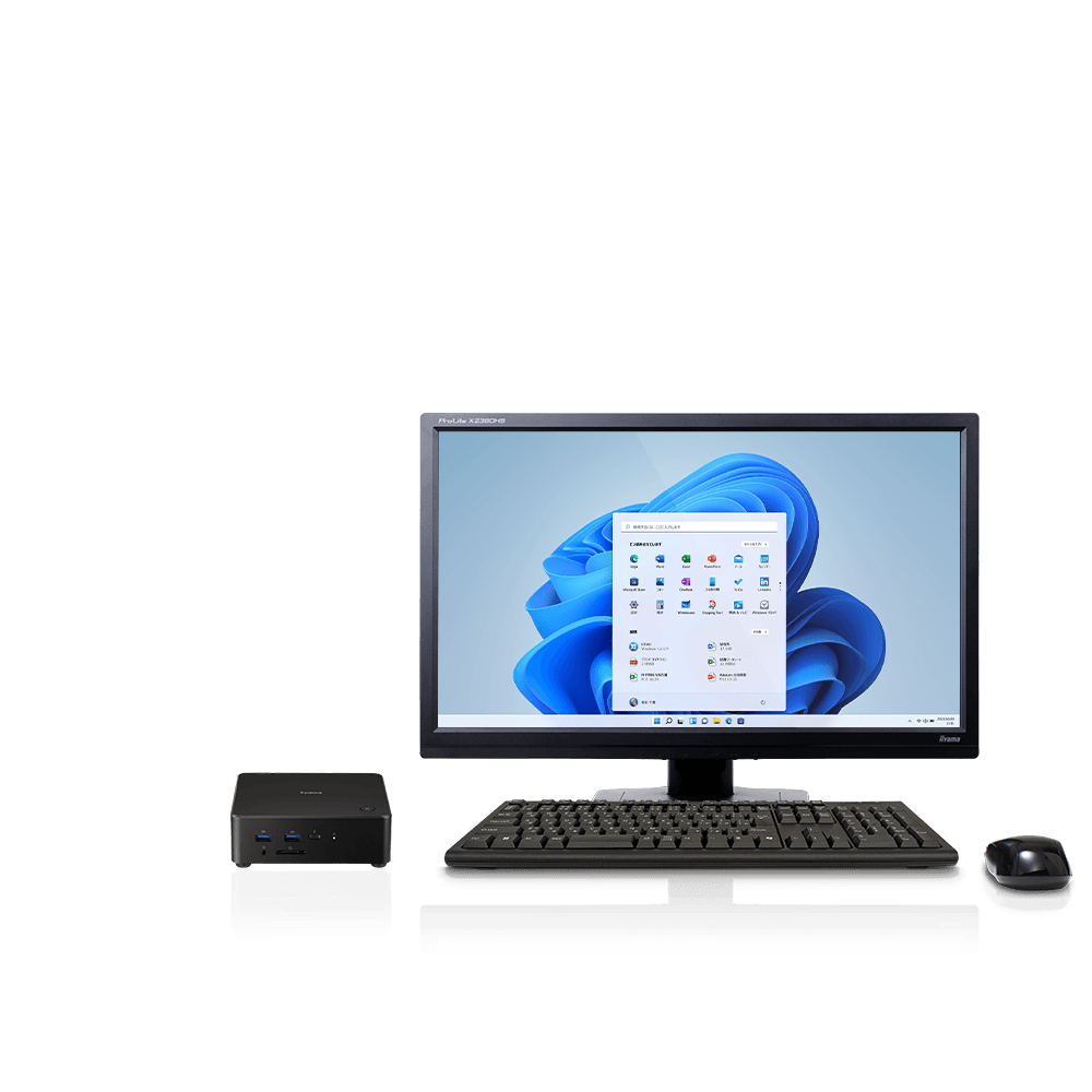 Windows 11 Home / インテル® Core™ i3-1215U プロセッサー / CPU統合チップセット / DDR5 8GB(8GB×1) / 500GB NVMe対応 M.2 SSD / 光学ドライブ非搭載 / インテル® UHD Graphics / コンパクトケース / ACアダプター / グリーン購入法適合品(※標準スペック時の測定となります。カスタマイズ時は弊社担当までお問い合わせください。)