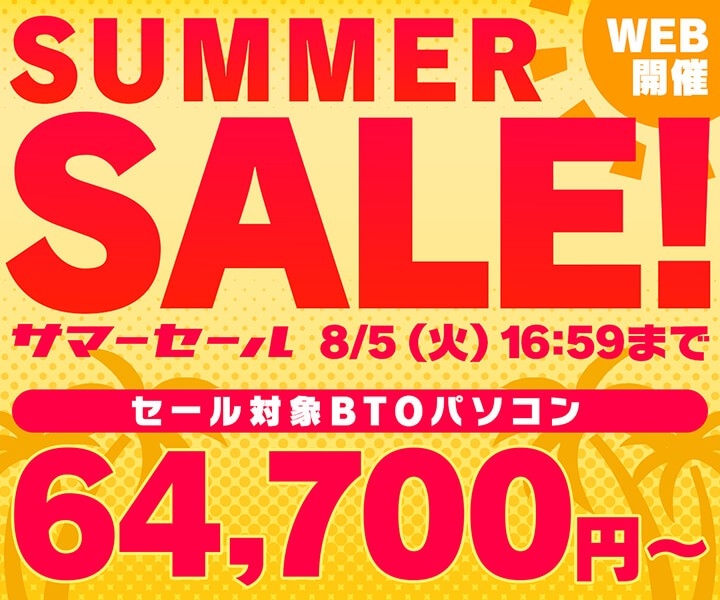 パソコン工房インターネット通販ではただいま『サマーセール』を8/5(火)16:59まで実施中!