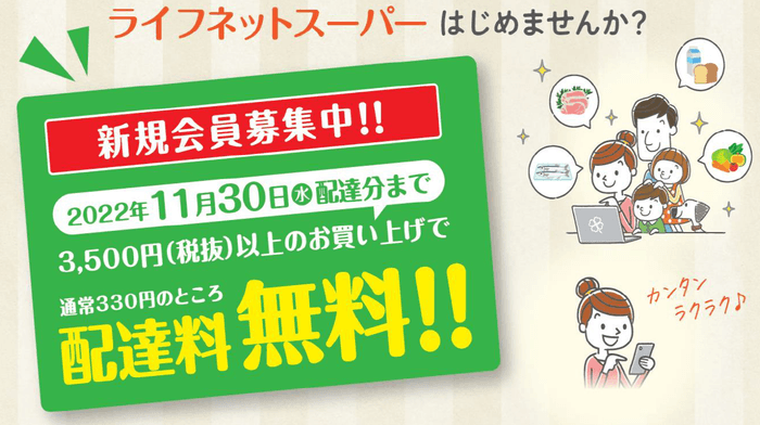 ライフネットスーパーのページをご覧いただき、お届け先が配達エリア内であれば、ご登録完了後すぐにご注文いただけます。