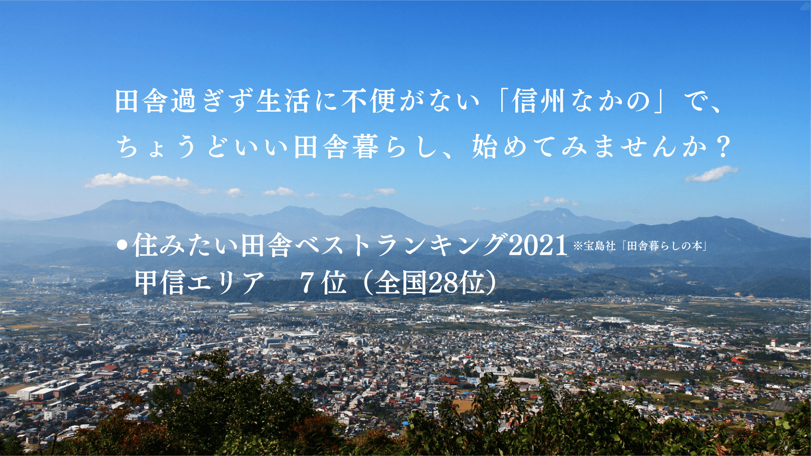 人口約42,000人。唱歌「故郷」の作詞者・高野辰之、「シャボン玉」の作曲家・中山晋平が生まれ育った地で、豊かな自然、美しい山々、日本のふるさとの原風景が今も広がっています。リンゴ、キノコ、ブドウとおいしい食べ物いっぱい。自然に囲まれている一方で、市街地にはスーパーやホームセンターなど大規模店舗や病院もたくさん!高速道路のインターチェンジが2つあり、新幹線駅にも近く、首都圏とのアクセスもとても良い「ちょうどいい田舎」です。