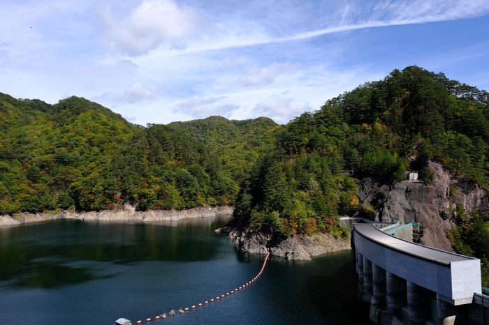 国内屈指の堤高を誇るアーチ式のダムで、首都圏の水がめとして役割を果たしています。乗車しながらでも、高さのあるアーチの曲線美を感じることができます。また、水面は川治ブルーと称されるエメラルドグリーンで、紅葉とのコントラストが楽しめます。