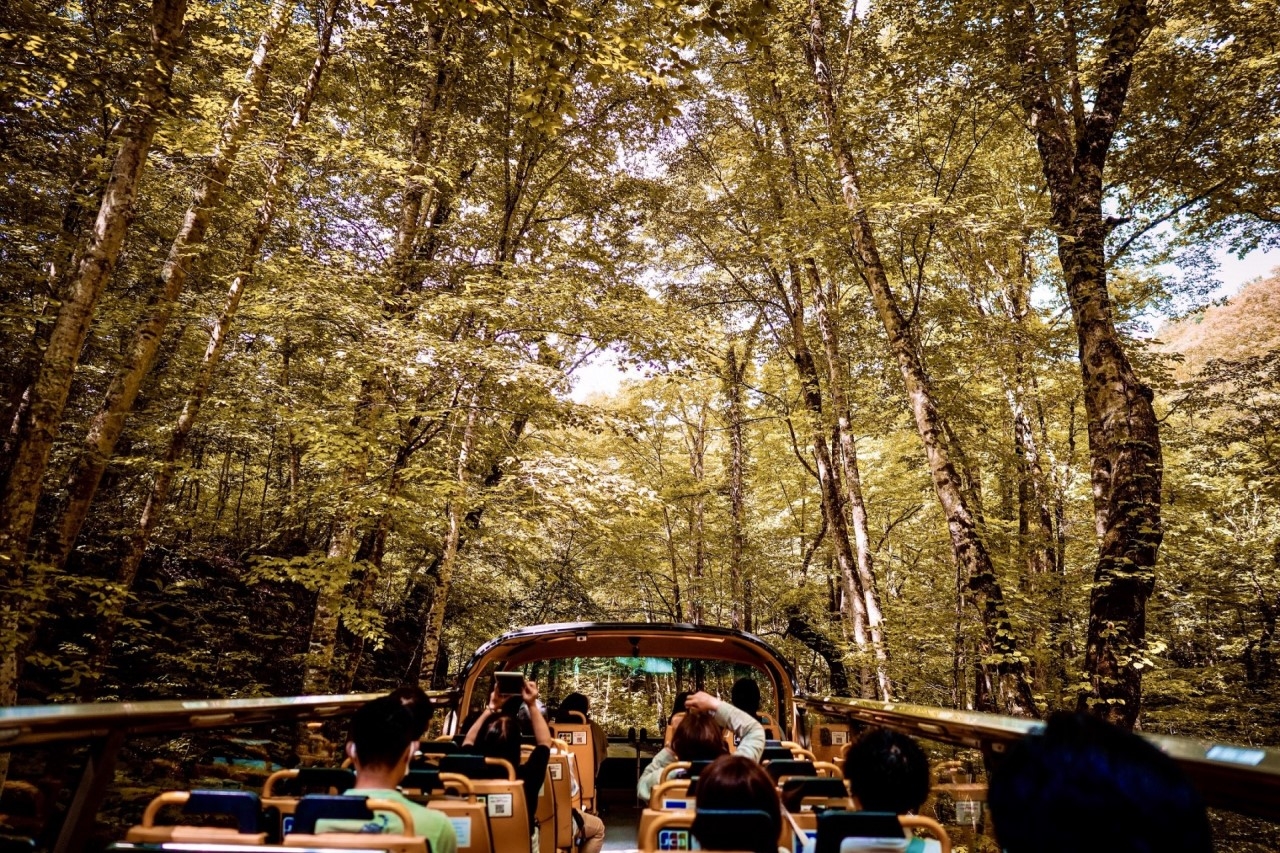 当ツアー最大の魅力は、圧倒的な開放感を味わえる点です。オープントップバスは、屋根がないため、色づいた紅葉を間近に楽しむことができます。景色や秋のさわやかな風、森の香りを存分に楽しんでいただけるよう、ゆっくりと走行します。
