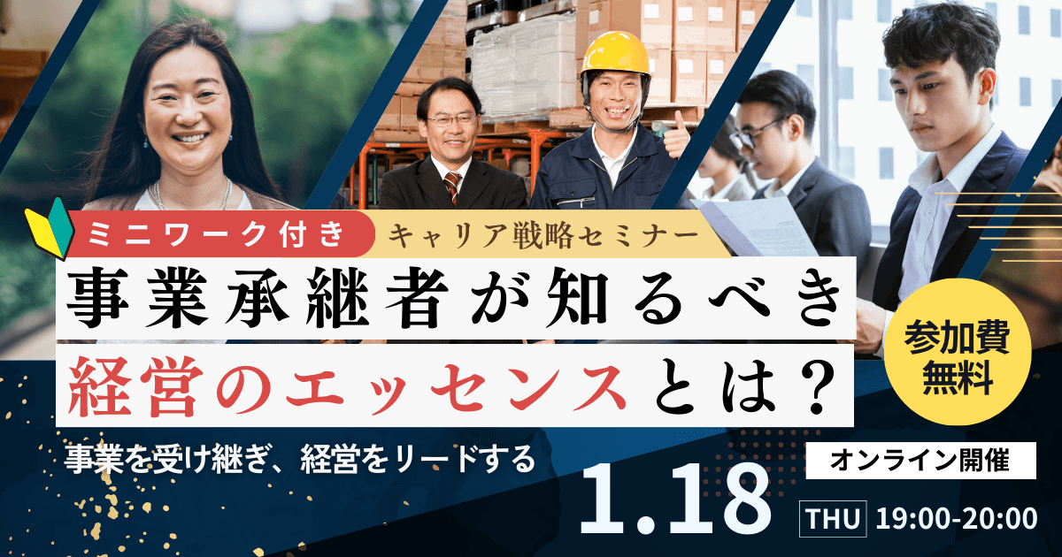事業承継者が知るべき『3つの経営エッセンス』を解説 無料オンラインセミナーを1月18日開催