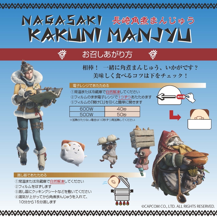 「長崎角煮まんじゅう」の岩崎本舗(株式会社岩崎食品、本社:長崎県西彼杵郡、代表取締役:岩崎 礼司)と、「モンスターハンターワールド:アイスボーン」株式会社カプコン((CAPCOM CO., LTD.)本社:大阪府大阪市、代表取締役社長 最高執行責任者:辻本 春弘)との夢のコラボレーションが実現いたしました。