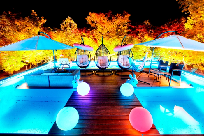 ガーデンテラスプール(縦3m×横9m×深さ1m)・庭園足湯・