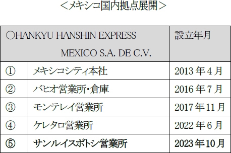 当社メキシコ法人であるHANKYU HANSHIN EXPRESS MEXICO S.A. DE C.V.は、メキシコ中央高原エリアのサンルイスポトシ市に新たに営業所を開設し、10月2日より営業を開始します。