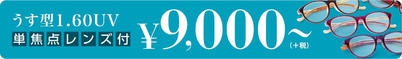 薄型1.60UV 単焦点レンズ付き¥9,000~(+税)より、