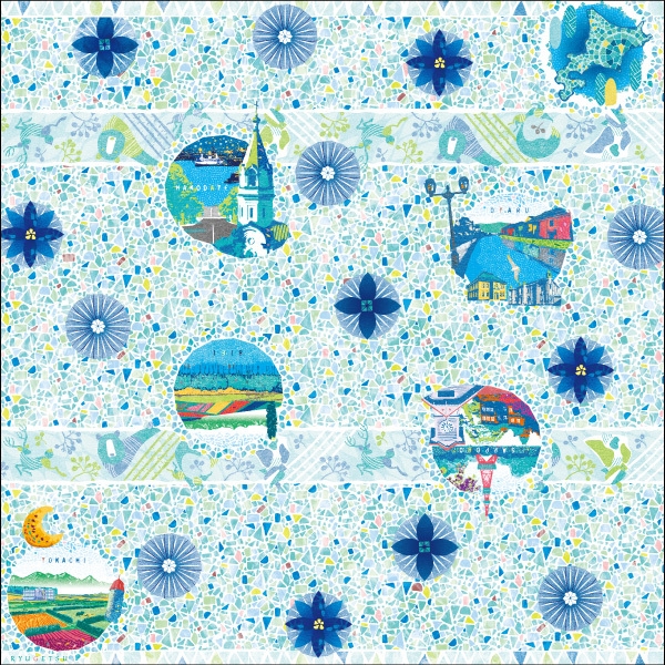 小樽情緒あふれるふろしきは、ガラス模様の中に、北海道の名所や、